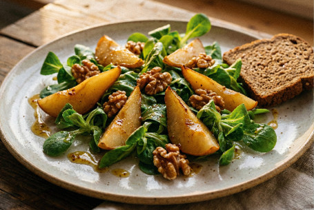Feiner Feldsalat mit gebratener Birne und Walnuss